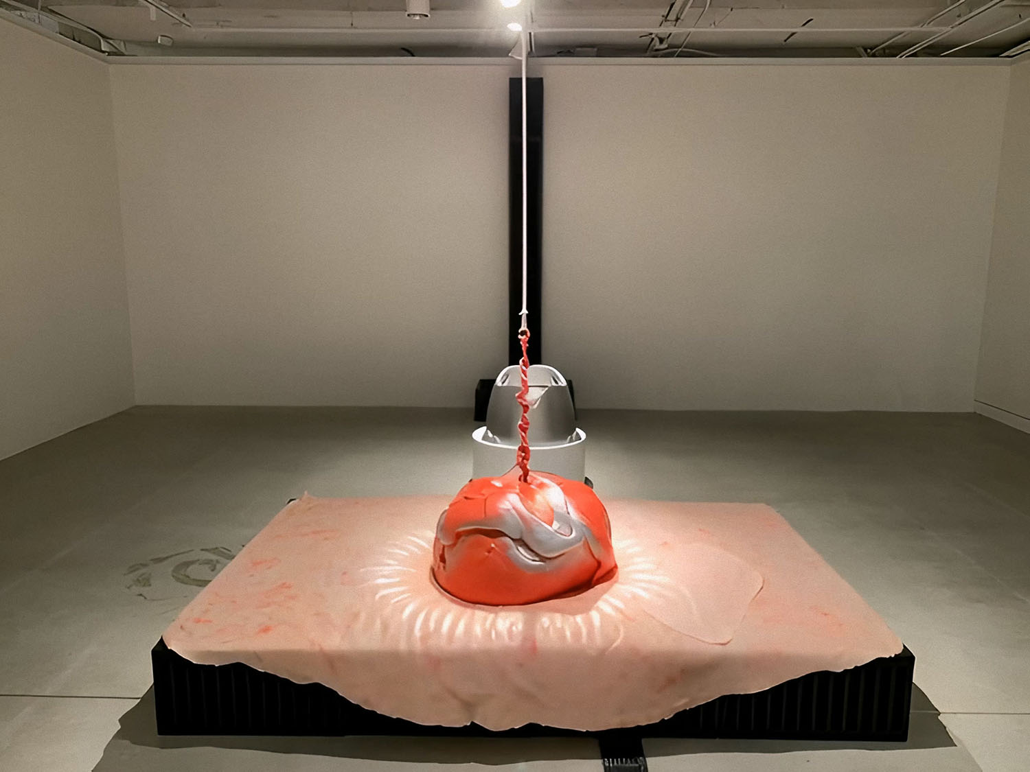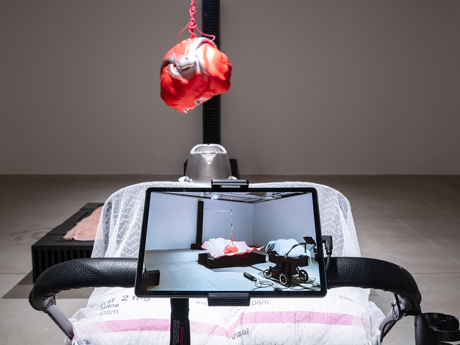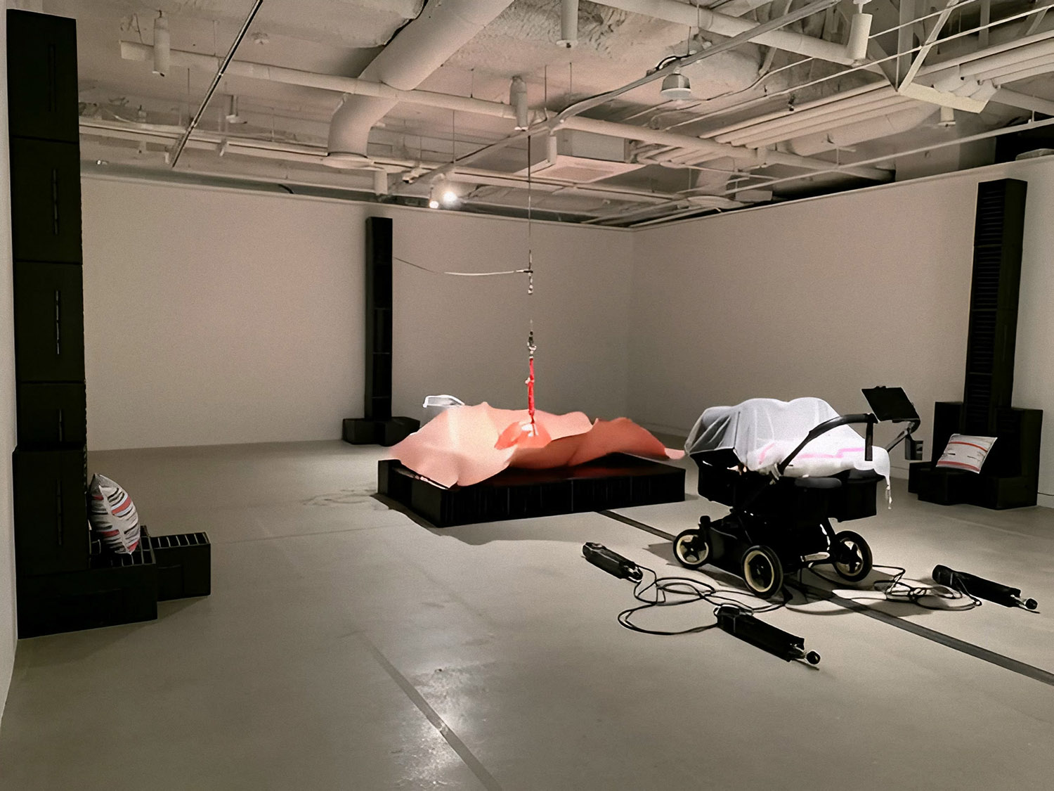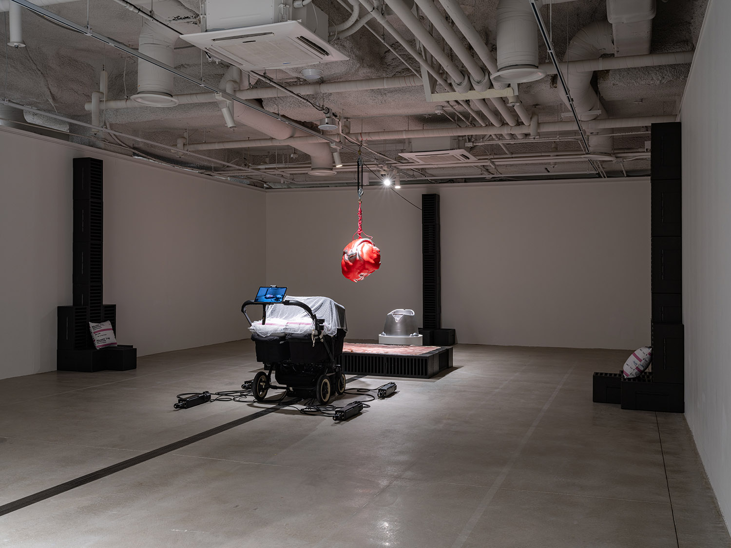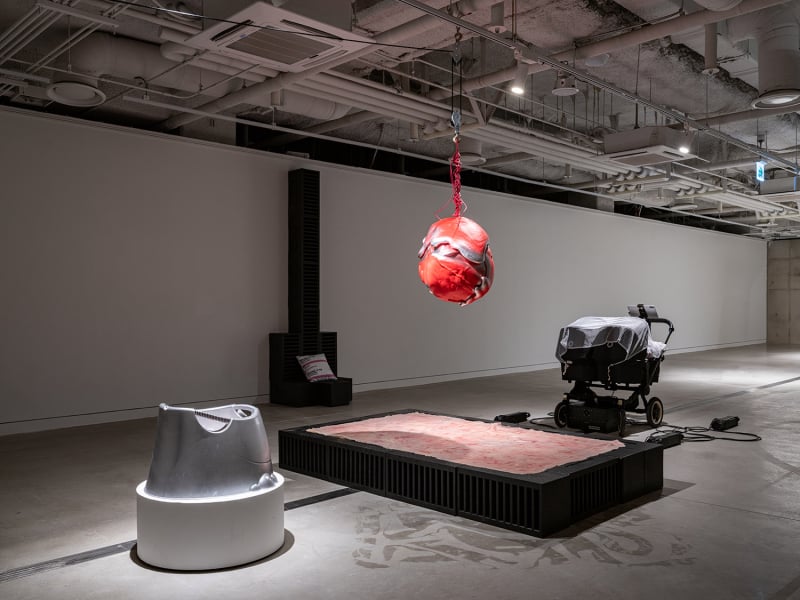 영상 〈세계의 균형〉(2025)이 불균형한 세상의 구조에 대한 비판이라면, 설치 〈바깥으로 나가서 확인해 봐야겠어요〉(2025)는 세계에 대한 행동의 의지를 보여준다. 〈세계의 균형〉에서 세계는 거대한 굴레로서, 사람들은 그 굴레에 포획된 무기력한 군중으로 표현된다. 사회를 지배하는 힘의 논리, 고단한 노동자의 삶, 끊임없이 내몰리는 치열한 경쟁의 구조에서 사람들은 각자 삶의 정점에서 빛나기 위해 가장 높이 올라가기를 열망한다. 그러나 그 정점에는 단 한 사람만 설 수 있고, 그 한 자리를 차지하기 위해 사람들이 서로를 밟고 올라가는 냉혹한 현실이 드러난다. 그럼에도 영상은 불균형의 가장 끝에 내몰린 존재들, 즉 죽음의 경계에 서 있거나 위험에 처한 사람들의 이야기에도 주목한다. 이는 컨테이너에 깔려 목숨을 잃는 노동자, 반도체를 만들기 위해서 백혈병에 걸리는 노동자, 배터리 생산 중 화재로 유명을 달리하는 외국인 노동자들, 빵 제조 공장에서 사람이 죽는 비극이 발생했음에도 컨베이어 벨트가 멈추지 않아 빵이 사람보다 중요시되던 서글픈 현실과도 연결되며, 소수의 편의를 위해 많은 이들이 희생당하는 장면들과도 맞닿아 있다. 인간 사회의 피라미드 구조 속에서 필연적으로 발생하는 희생과 소외를 직시하는 이 작품은 과연 '균형'은 무엇이며, '불균형'한 세계 속에서 우리가 어떻게 존재해야 하고 어떤 의미를 찾아야 할 것인지에 대한 성찰을 요구한다. 각 단편은 개별적 이야기인 동시에 거대한 불균형의 퍼즐 조각이 되어 각자의 위치와 역할 뿐만 아니라 사회의 구조를 상기하게 한다.